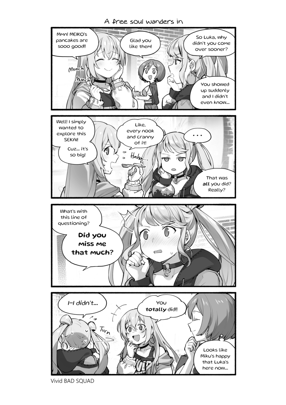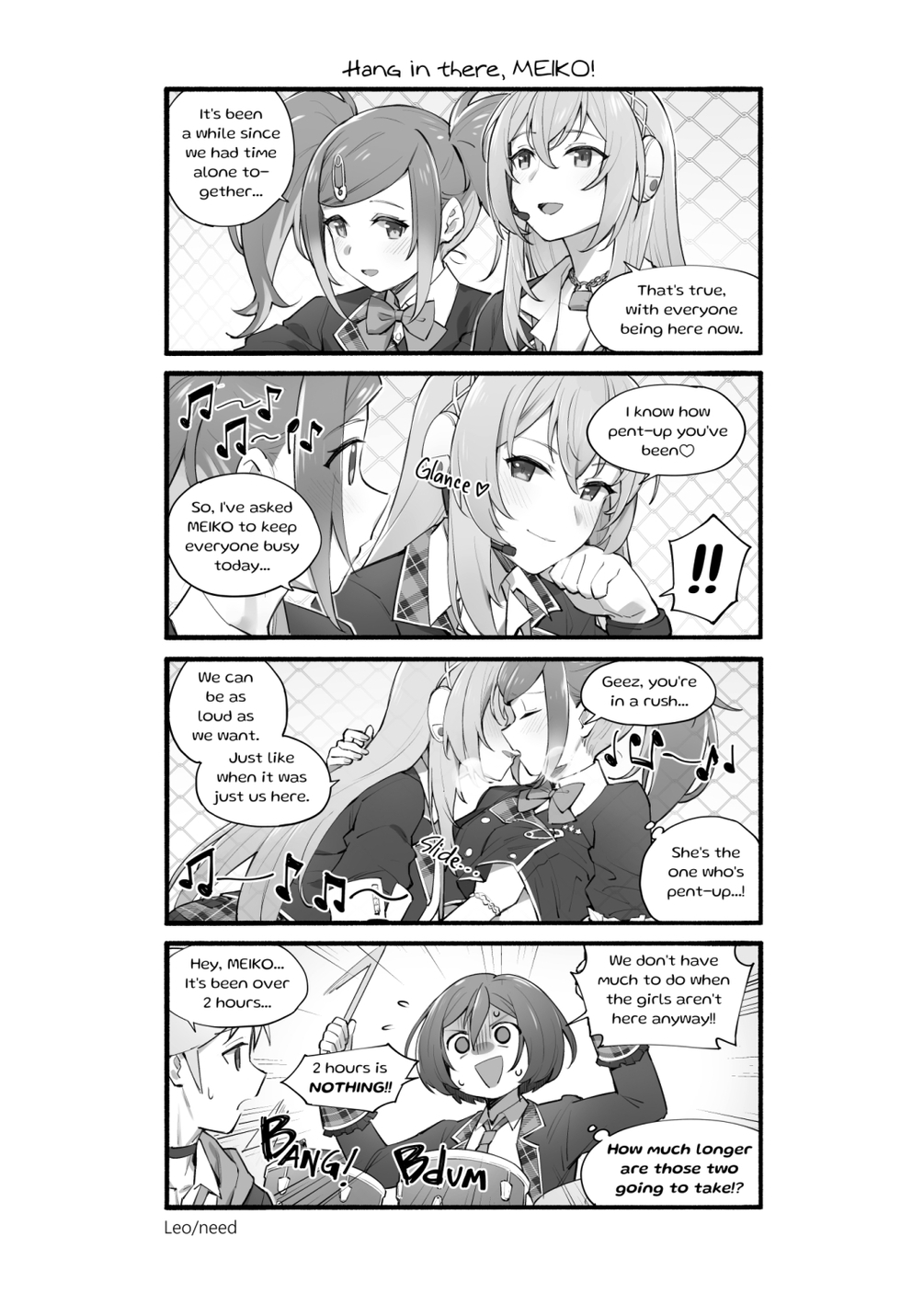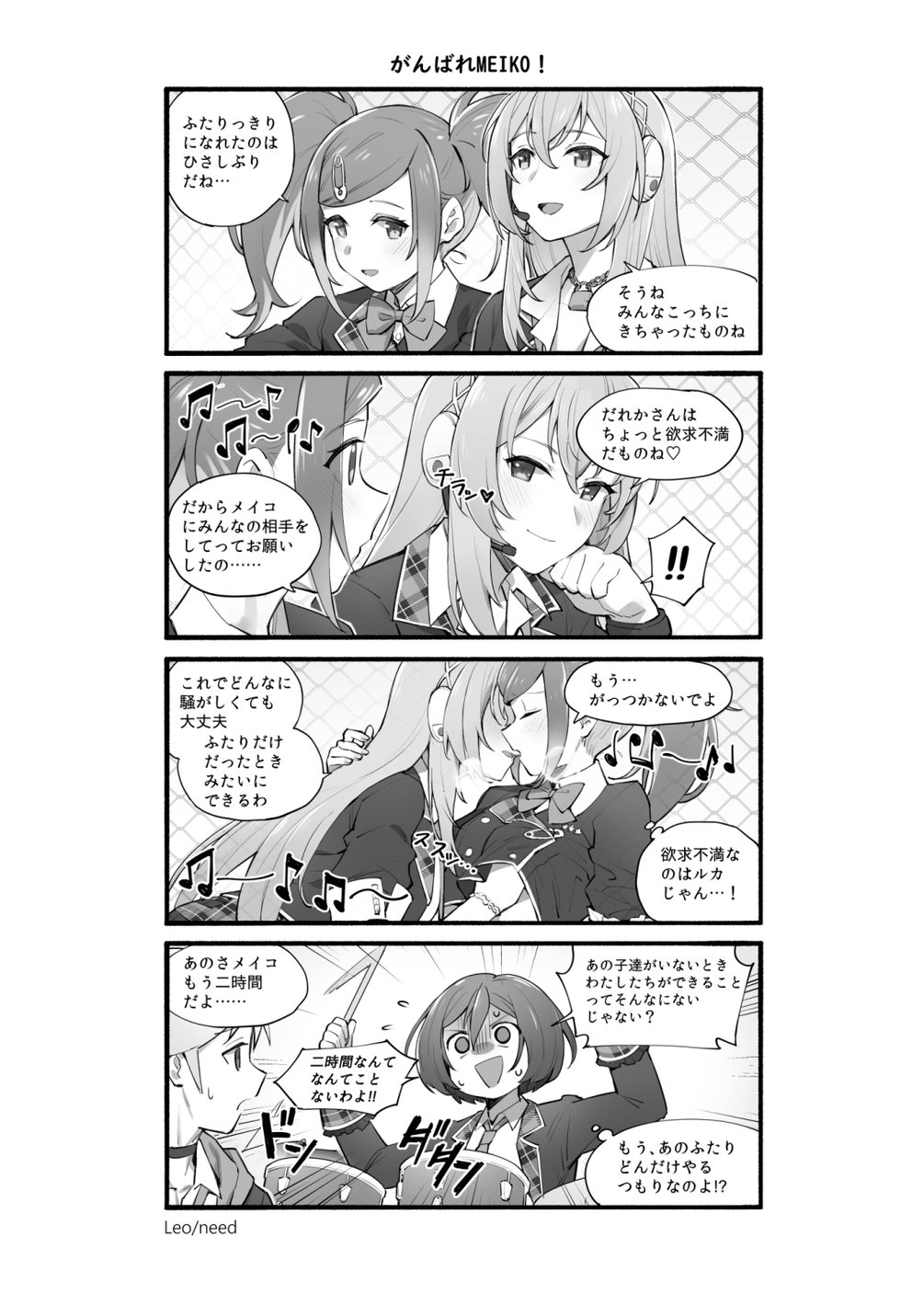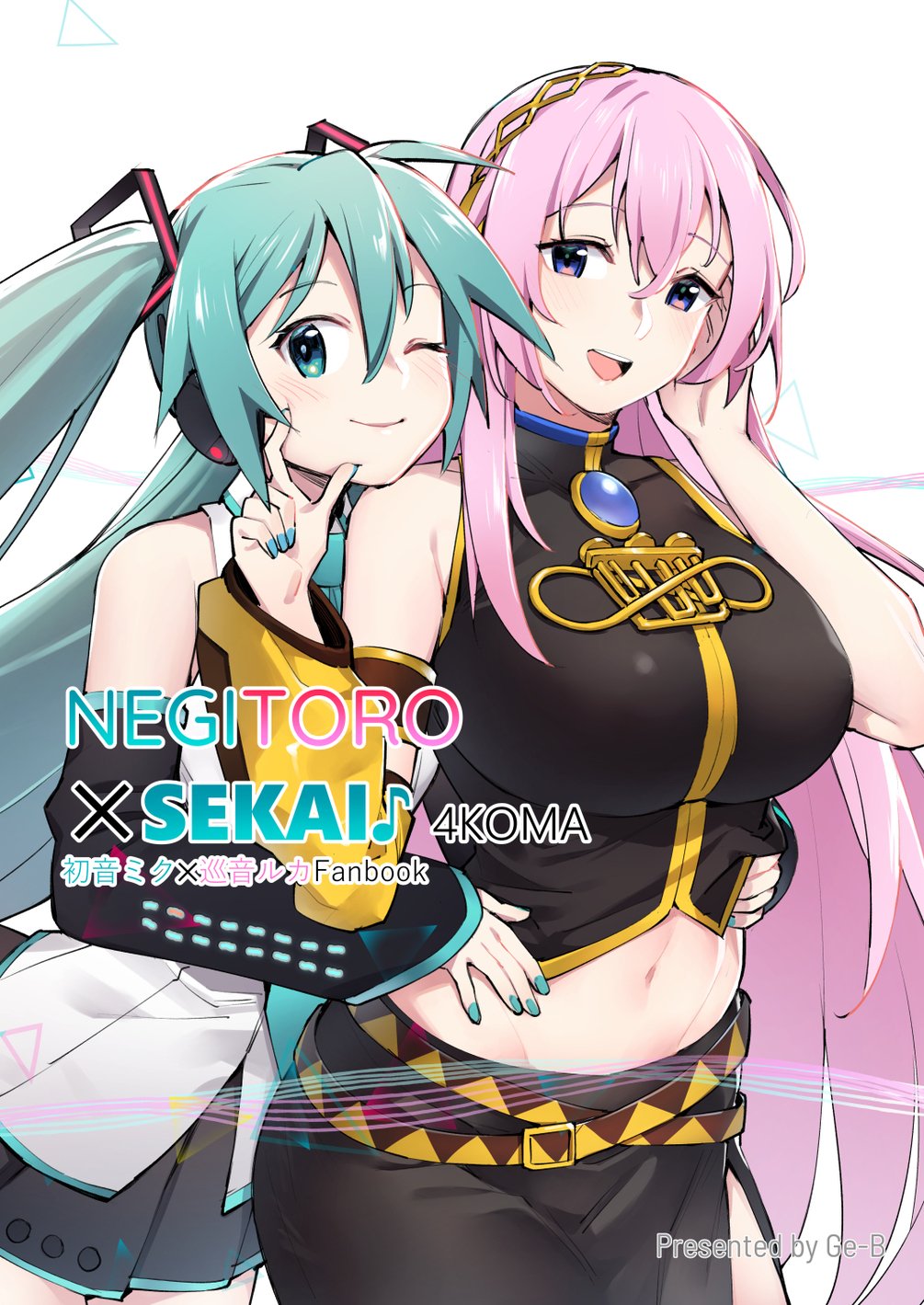 An unofficial yuri 4koma fanbook focusing on the Project Sekai Colorful Stage variants of Hatsune Miku and Megurine Luka.